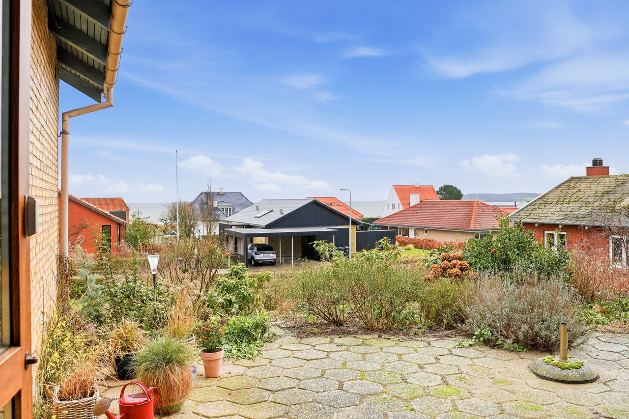 Grunden på 875 m² er overkommelig og nem at holde, samtidig med at der er rig mulighed for at nyde udelivet i rolige omgivelser. Beliggenheden er ideel for jer, der ønsker kort afstand til bymidte, indkøb og daglige gøremål, men som samtidig sætter pris på fred, udsigt og nærhed til naturen.