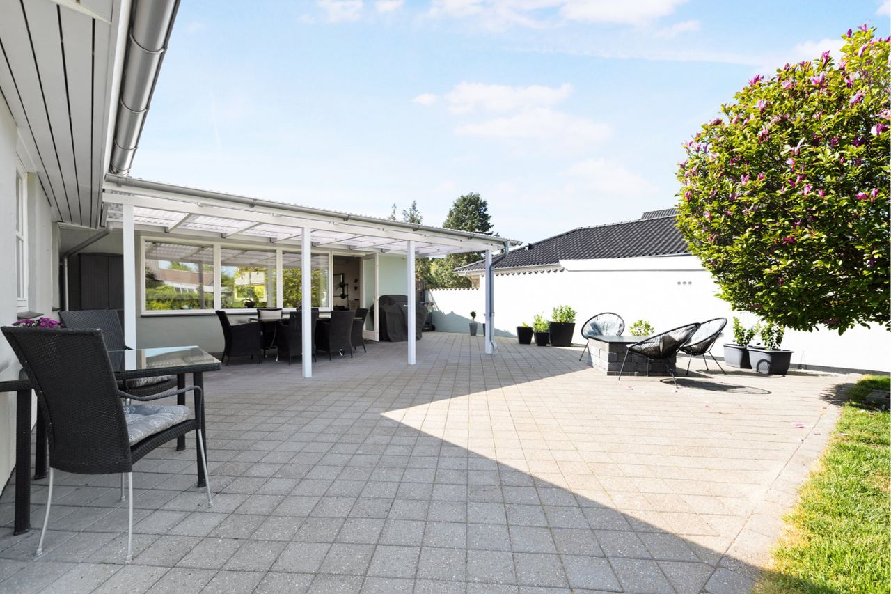 skærver og en lukket og ugeneret vestvendt baghave, med stor overdækket terrasse, men stadig god