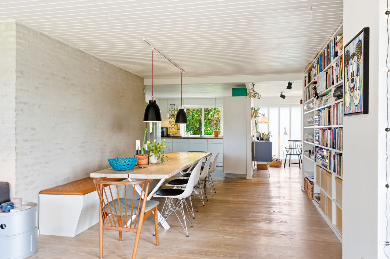 Huset rummer flere gode værelser, to badeværelser, bryggers samt et ekstra rum, der nemt kan bruges som kontor, hobbyrum eller teenageafdeling. Planløsningen gør det oplagt til familien, der ønsker plads til både fællesliv og privatliv.