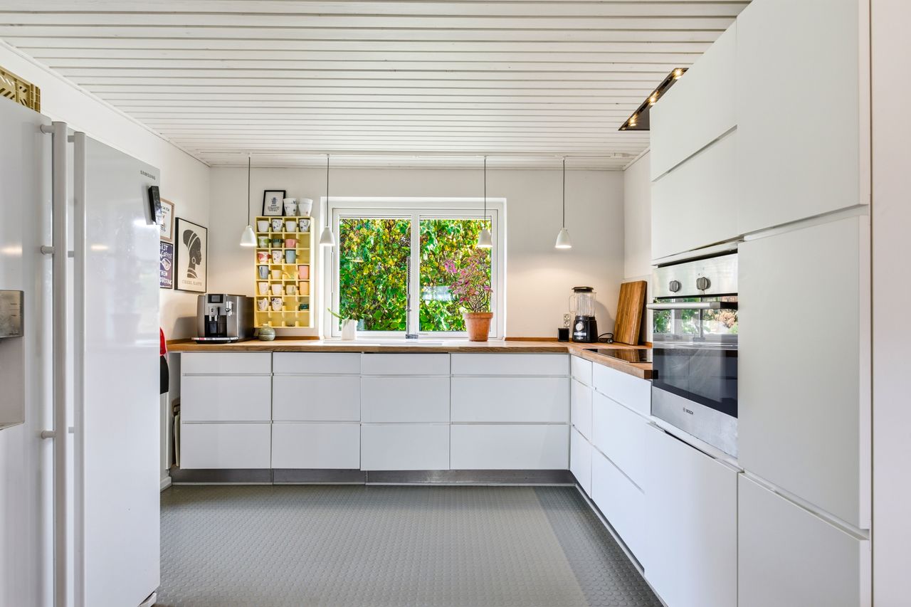 Villaen er opført i 1979 og fremstår som et solidt og funktionelt familiehjem på 149 m² bolig. Indretningen er klassisk og veldisponeret med et lyst køkken-alrum i åben forbindelse til stuen, hvor store vinduespartier trækker lyset ind og skaber en behagelig atmosfære. Herfra er der udgang til terrassen og den hyggelige have, som ligger ugeneret og indbyder til udendørsliv i sommerhalvåret.