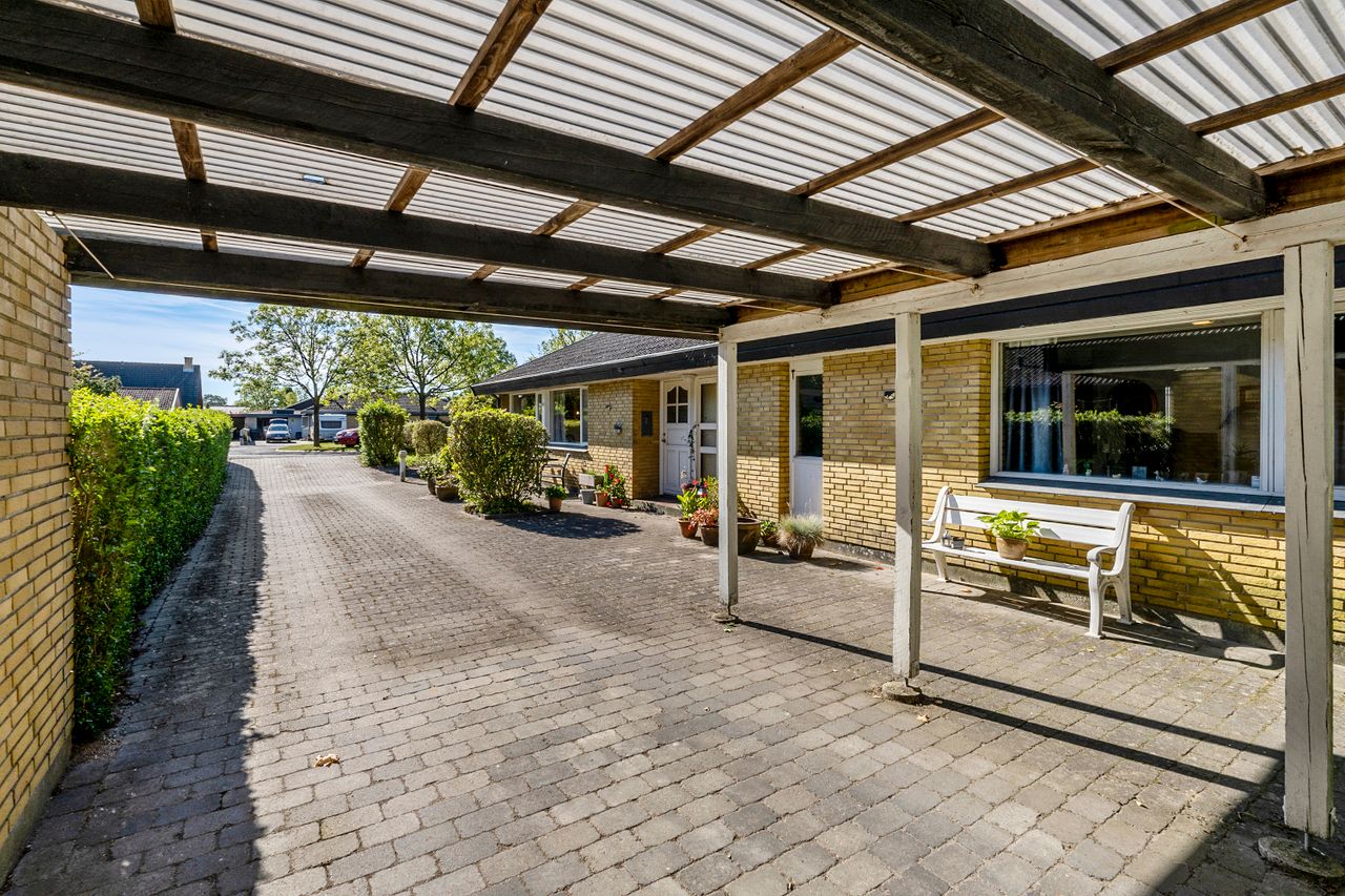 Boligen rummer lyse opholdsrum, køkken, badeværelse, værelser samt bryggers, en planløsning, der fungerer i hverdagen, men som samtidig giver plads til, at du kan sætte dit eget præg gennem modernisering og opdatering. Hertil kommer carport og udhus, som giver gode parkerings- og opbevaringsmuligheder.