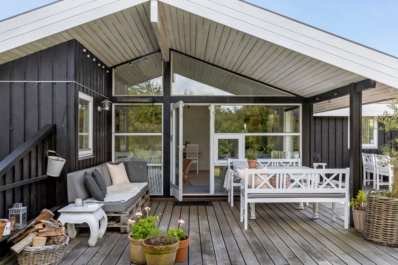 Udenfor venter en fredelig, grøn oase med masser af plads til leg, grillhygge og afslapning. Grunden ligger godt og privat og tæt ved er der større grønne fællesarealer, som giver ekstra albuerum - og en tryg legeplads for børnene. Via små stier er der blot ca. 300 meter til den skønne badestrand, så det er nemt at få en dukkert. Når du kommer tilbage til huset, kan du skylle dig af under udendørsbruseren.